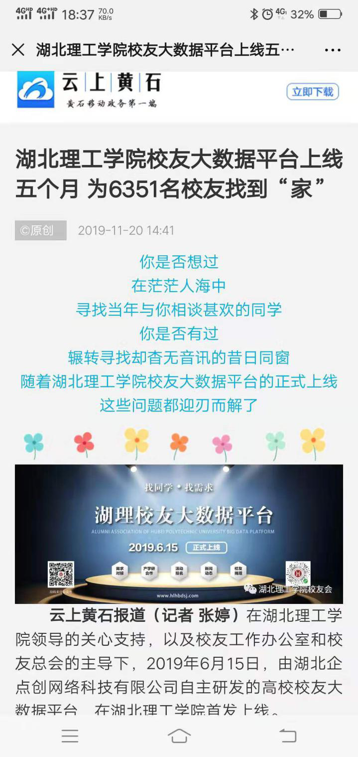 企點創網絡自主研發的高校校友大數據平臺受到黃石電視臺《云上黃石》專題報道。